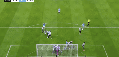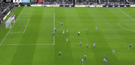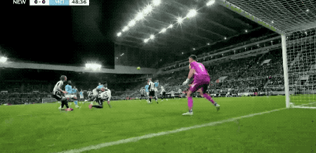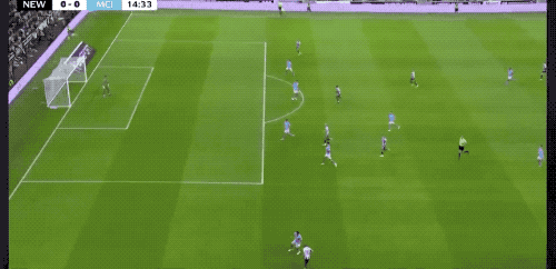 下半场开始仅仅4分钟,阿克45度传中,皮球打在戈登的两腿之间,差点造成纽卡10号的自摆乌龙。
