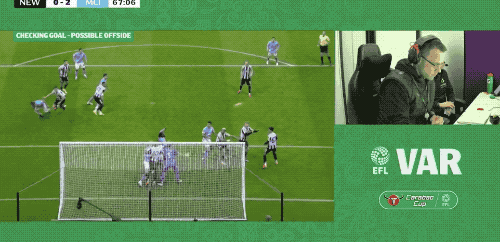 第63分钟,曼城获得角球,塞梅尼奥背对球门,一记精彩的杂耍进球,梅开二度。但是,VAR立即介入,曼城球员一脸懵,裁判判罚哈兰德越位在先,进球无效。